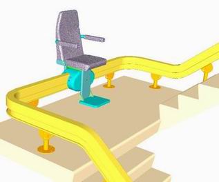 السلالم الدائرية . ويساعد مصعد السلالم الأشخاص الذين يجدون صعوبة في