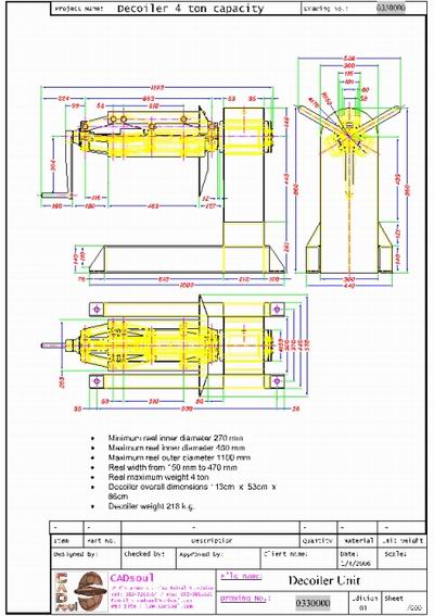 Technical drawing of decoiler