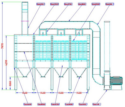 Baghouse Filter unit for cement , galvanizing and recycling factories