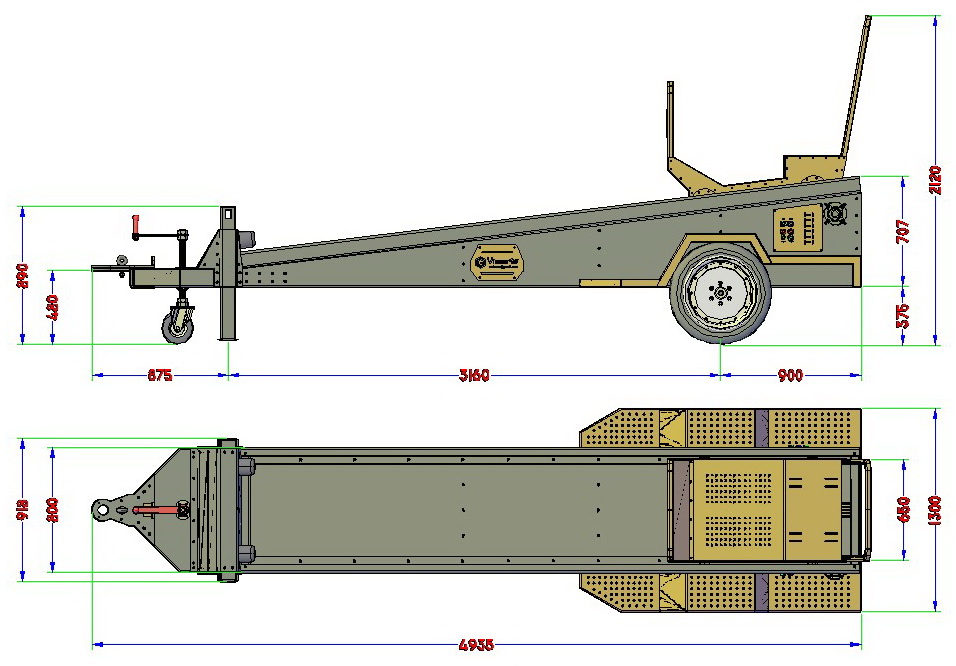 المقطورة مزودة بركائز في الطرف الأمامي يتم فتحهم أثناء التدريب