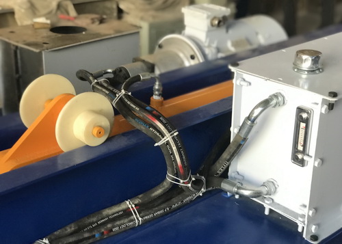 والماكينة مزودة بسلندر ومضخة هيدروليكية تدار من موتور