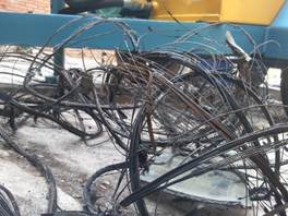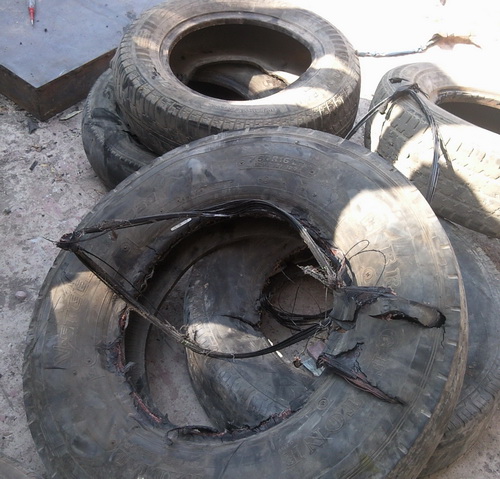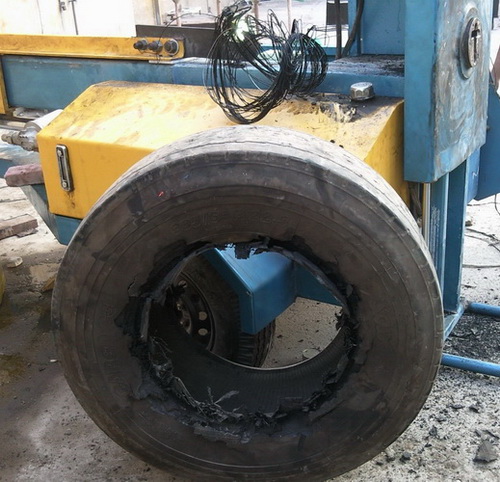 بنزع الشنبر السلك من الإطار قبل تقطيعه بالشريدر. وإستخدام ماكينة نزع