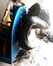 نزع السلك من إطارات السيارت الخاصة وسيارات النقل والشاحنات. والماكينة مزودة بلوحة كهربية للتشغيل وبيد هيدروليكية للتحكم في