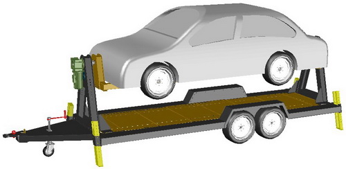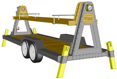 يتم تثبيت سيارة التدريب علي كمرة طولية أعلي المقطورة